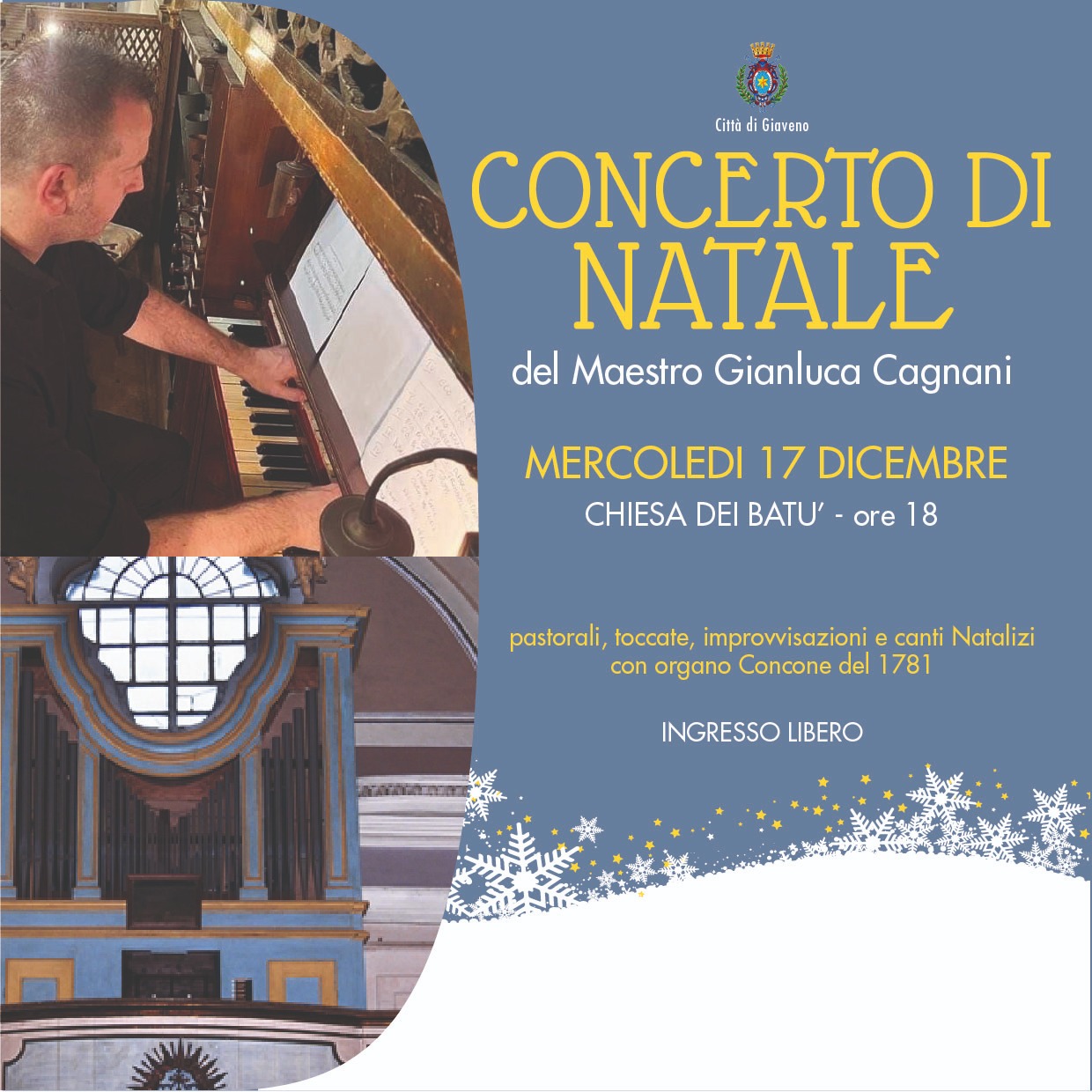 Un viaggio musicale tra pastorali, toccate, improvvisazioni e canti natalizi, eseguiti con l’organo storico Concone del 1781.