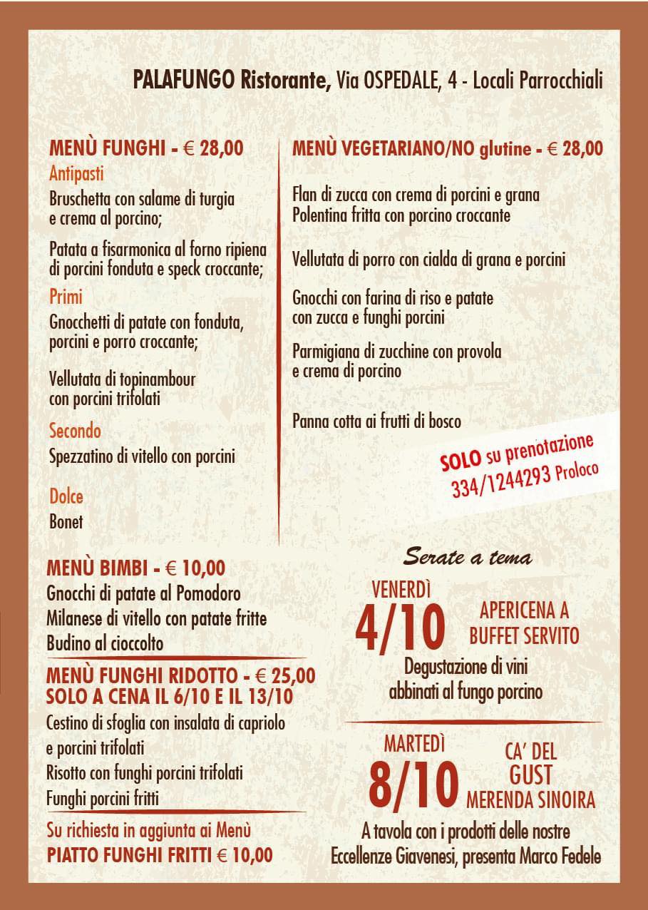 - Il 𝑷𝒂𝒍𝒂𝒇𝒖𝒏𝒈𝒐, Via Ospedale n° 4, propone menù fungo (anche per vegetariani e senza glutine) ogni sera: esclusivamente su prenotazione 334 1244293
