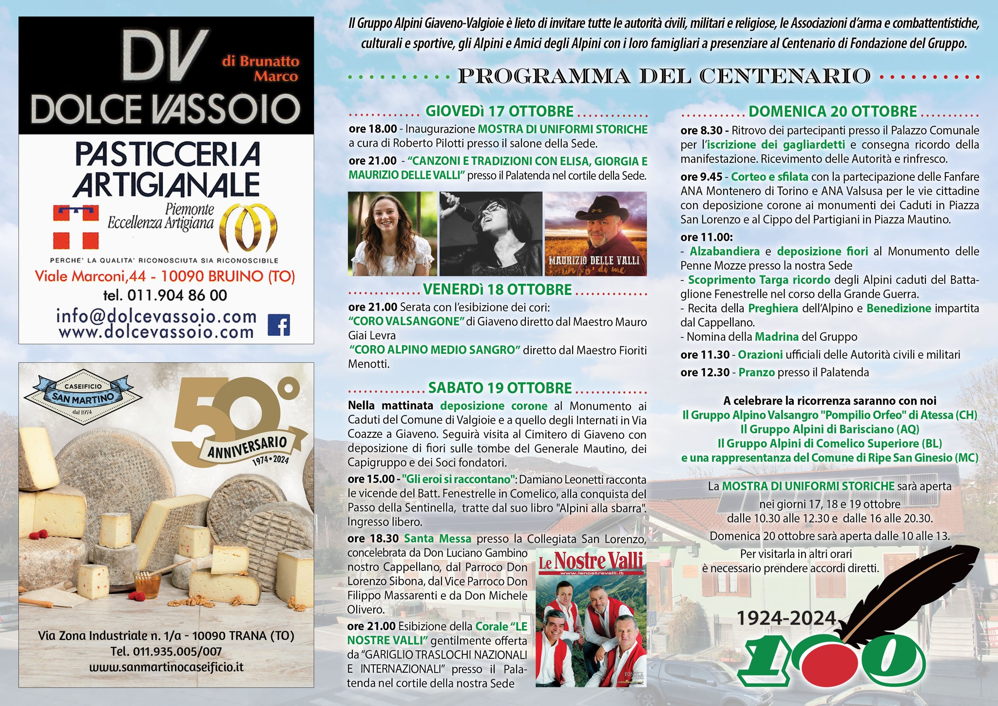 si celebrerà il Centenario della Fondazione del Gruppo Alpini Giaveno Valgioie