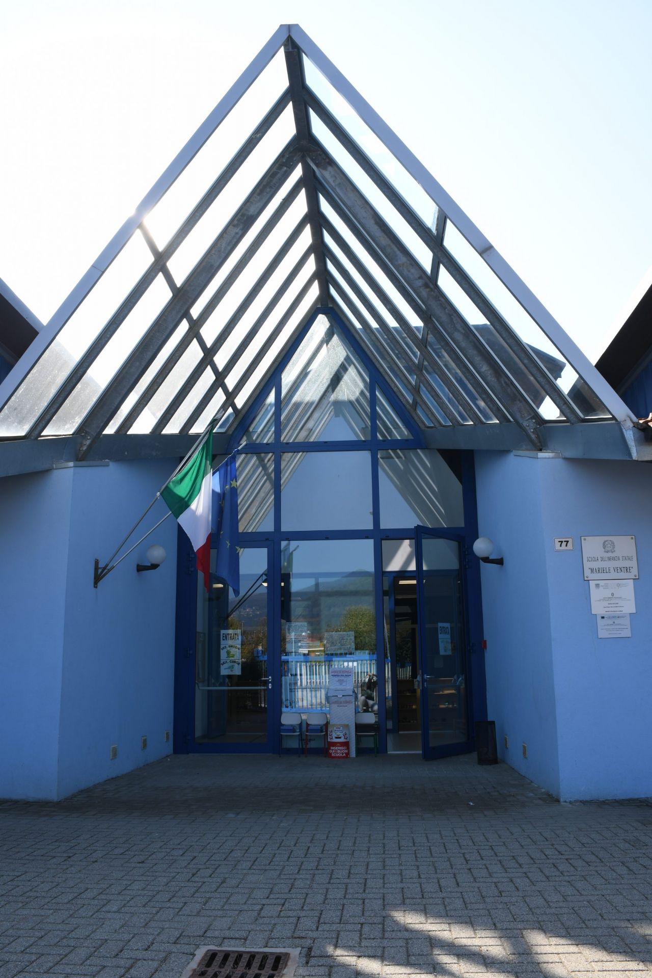 L’edificio è circondato da un grande giardino soleggiato, con prato, alberi e giochi.