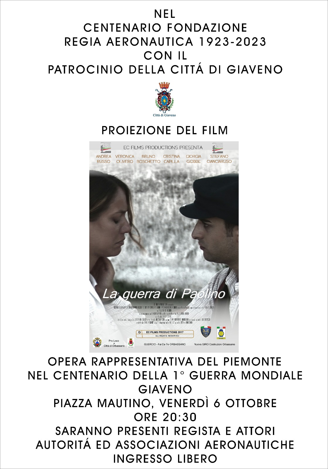 in occasione del Centenario della Fondazione Regia Aeronautica, proiezione del film