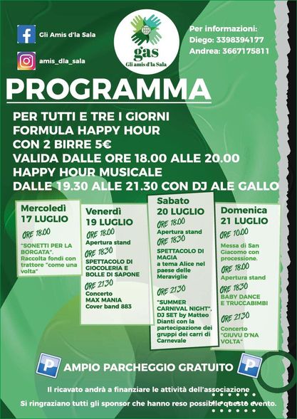 Da venerdì 19 a domenica 21 luglio presso la Piazza della Sala a Giaveno