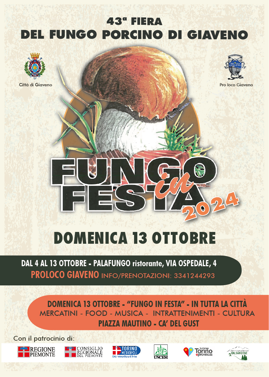 - Domenica 13 ottobre Fungo in Festa con 𝒔𝒕𝒓𝒆𝒆𝒕 𝒇𝒐𝒐𝒅 a base di fungo, musica, arte, 𝒎𝒐𝒔𝒕𝒓𝒂 𝒎𝒊𝒄𝒐𝒍𝒐𝒈𝒊𝒄𝒂, bancarelle, piazza del benessere, 𝑪𝒂̀ 𝒅𝒆𝒍 𝒈𝒖𝒔𝒕 con degustazioni, 𝒔𝒉𝒐𝒘 𝒄𝒐𝒐𝒌𝒊𝒏𝒈 e sfida Funghi&Riso