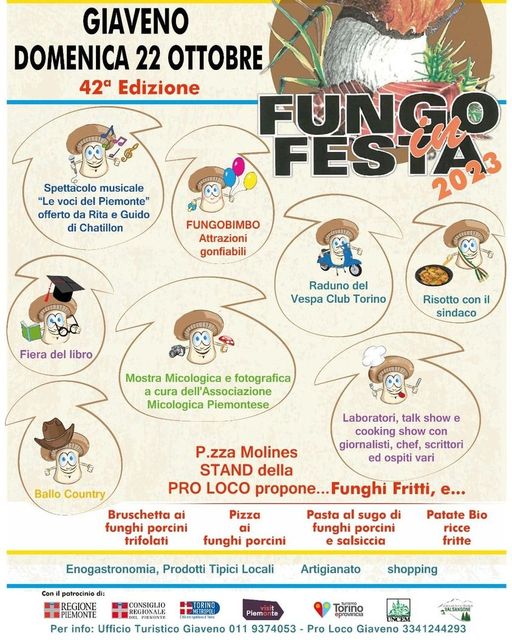 Domenica 22 Ottobre 2023 in Piazza Molines 42ª Edizione di FUNGO IN FESTA Programma come da locandine sottostanti