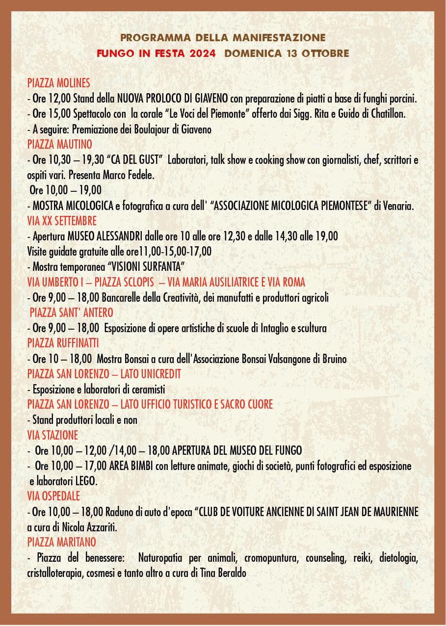 - Domenica 13 ottobre Fungo in Festa con 𝒔𝒕𝒓𝒆𝒆𝒕 𝒇𝒐𝒐𝒅 a base di fungo, musica, arte, 𝒎𝒐𝒔𝒕𝒓𝒂 𝒎𝒊𝒄𝒐𝒍𝒐𝒈𝒊𝒄𝒂, bancarelle, piazza del benessere, 𝑪𝒂̀ 𝒅𝒆𝒍 𝒈𝒖𝒔𝒕 con degustazioni, 𝒔𝒉𝒐𝒘 𝒄𝒐𝒐𝒌𝒊𝒏𝒈 e sfida Funghi&Riso